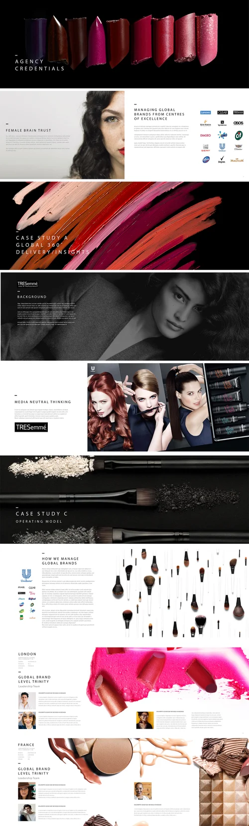 During my time at Campbell Ewald, many RFIs (Request for Information) were sent out in hopes of gaining new clients. For the RFI below, we highlighted Unilever to express our strategy and continuity with such a diverse brand.